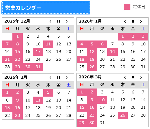 ※2026/02月~03月は変更されることが有りますのでご了承下さい。
