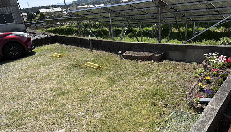 昨日と今日で、駐車場の草とりをしました。