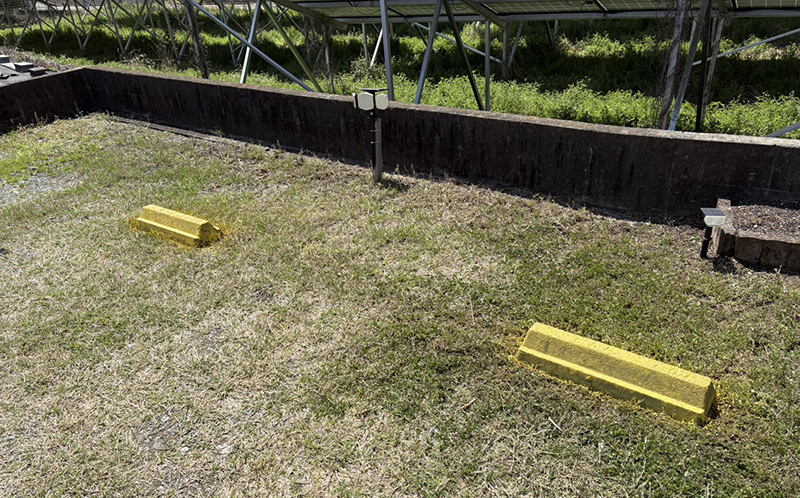 草むしりと黄色い車止め